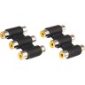Переходник 3 гнезда RCA - 3 гнезда RCA (тринокль) предназначен для соединения видео или аудиокабелей с разъемами штекер RCA. Разъем RCA стандартизированный разъем, передающий монофонический аудиосигнал или видеосигнал через кабель на видео, теле и аудиотехнику имеющую соответствующий разъем. С обеих сторон располагаются по три гнезда RCA-разъема. Корпус переходника изготовлен из качественного высокопрочного пластика, а металлические контакты из никелированного металла.